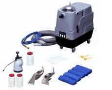 車のシートや内装を大量の高温水(75℃)を噴射して濯ぎ洗浄、酵素で汚れを分解し、同時に強力バキュームで遊離した汚れやカビ、